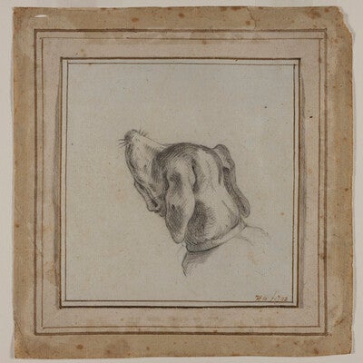 This refined drawing of a dog’s head, attributed to Hendrik Weymans, demonstrates a keen eye for observation and a sensitive, assured hand. In contrast to the more formal portrait—where emphasis is placed on status and representation—this study captures an intimate moment of focus: a single subject rendered with remarkable attention to form and character.